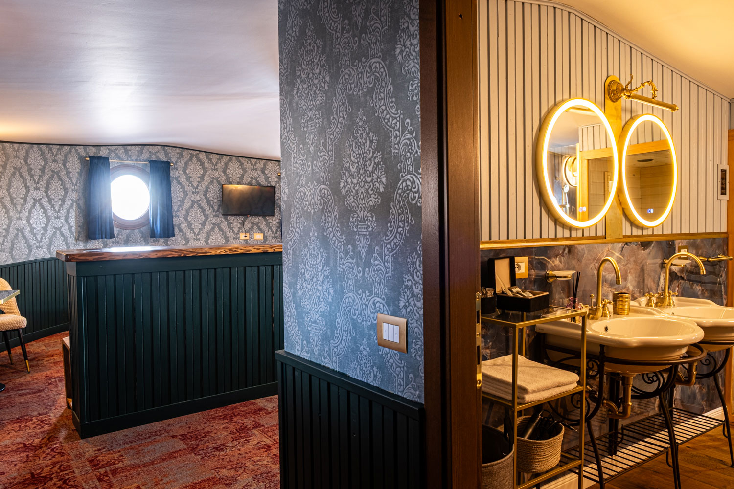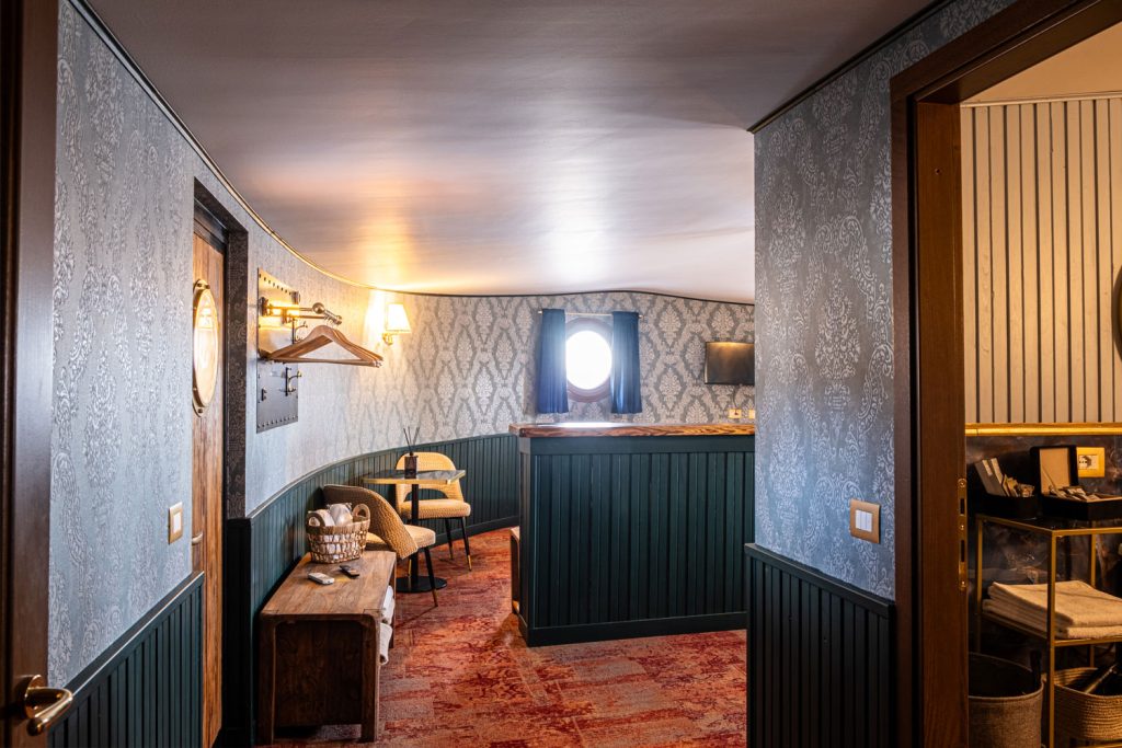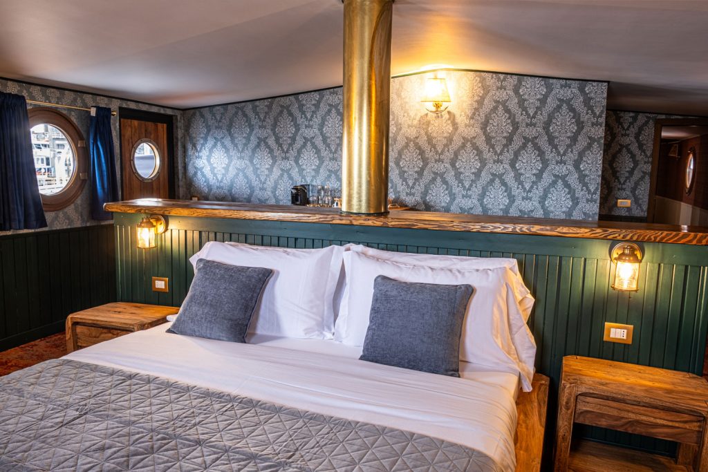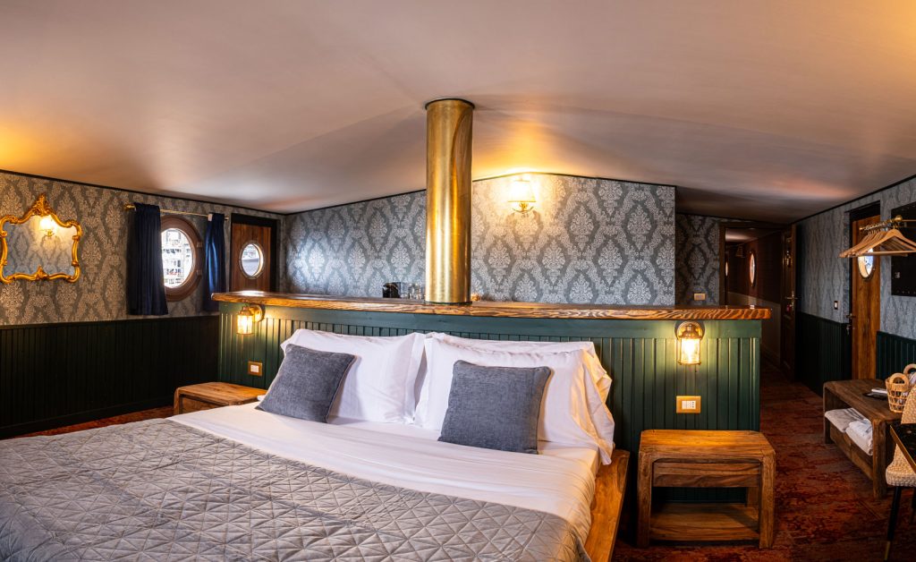 La Suite Lombardia è la camera più prestigiosa e spaziosa del Piroscafo Lombardia, un ambiente esclusivo che rappresenta il cuore e l’anima dell’imbarcazione. Il suo nome rende omaggio al piroscafo Lombardia, simbolo della grande tradizione della navigazione lacustre italiana, quando questi eleganti battelli solcavano i laghi trasportando viaggiatori, storie e sogni, diventando vere icone di stile e innovazione.